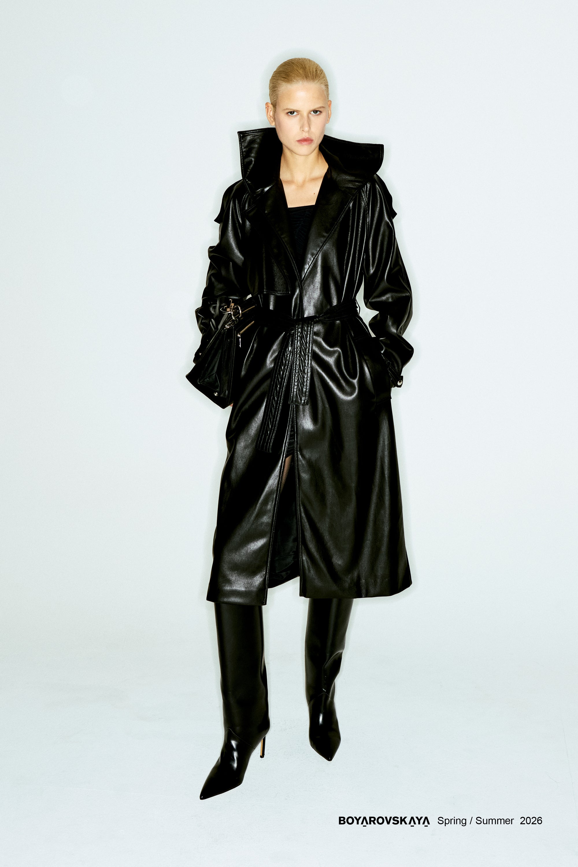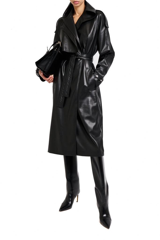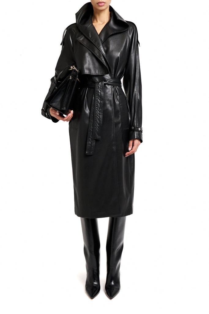 Elevate your wardrobe with this sophisticated trench coat, meticulously designed in Paris. Crafted from luxuriously soft faux leather, it delivers the polished aesthetic of a classic trench with enhanced comfort and durability. Every seam and fold reflects our commitment to refined craftsmanship. The structured silhouette flatters all figures while the premium material ensures effortless movement throughout your day. A timeless investment piece that transitions seamlessly from boardroom to evening engagements.