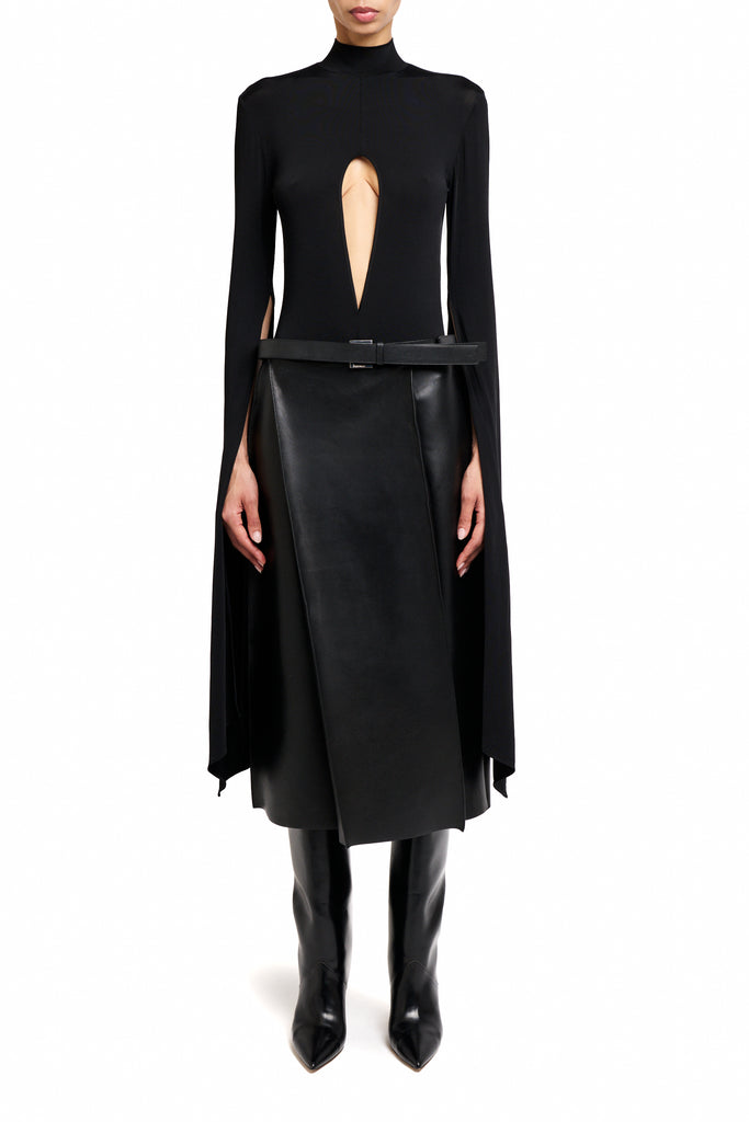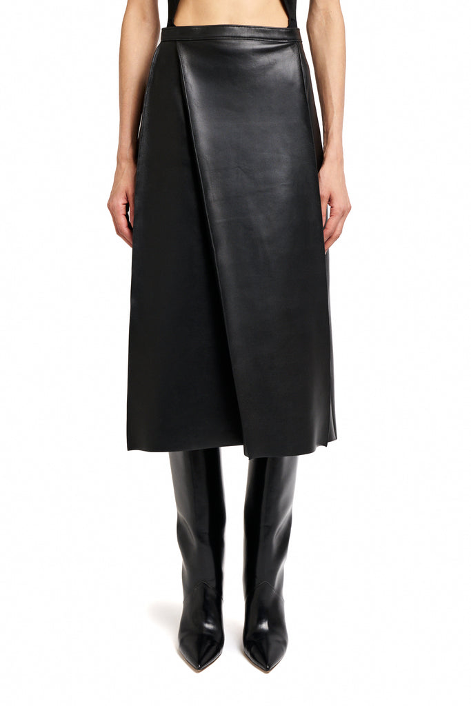 BLACK LEATHER SKIRT FOLD