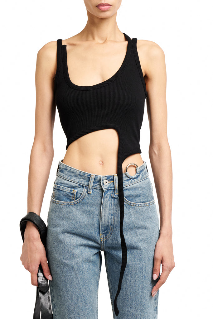 BLACK ASYMMETRICAL COTTON T-SHIRT BIAS