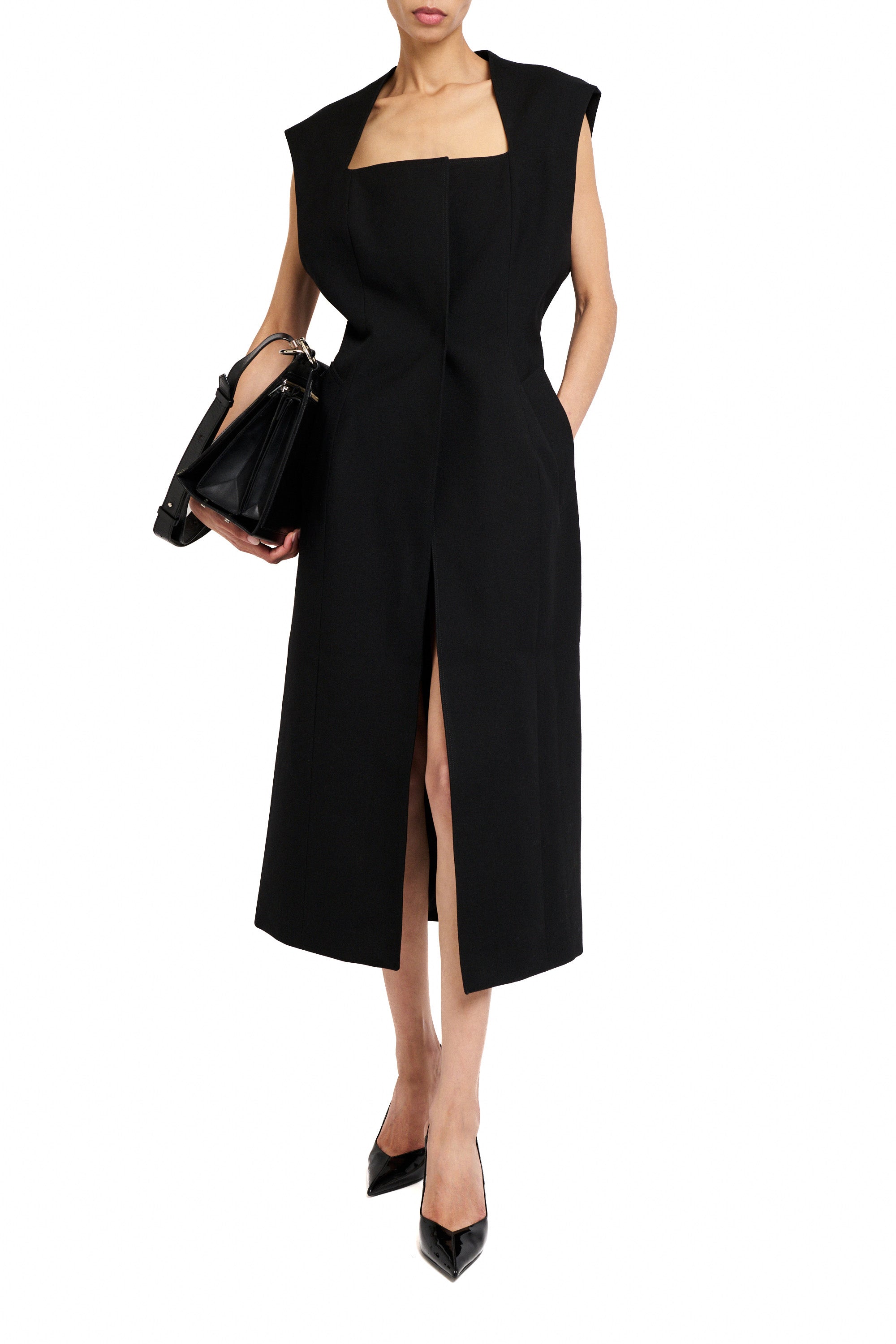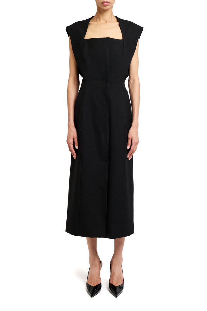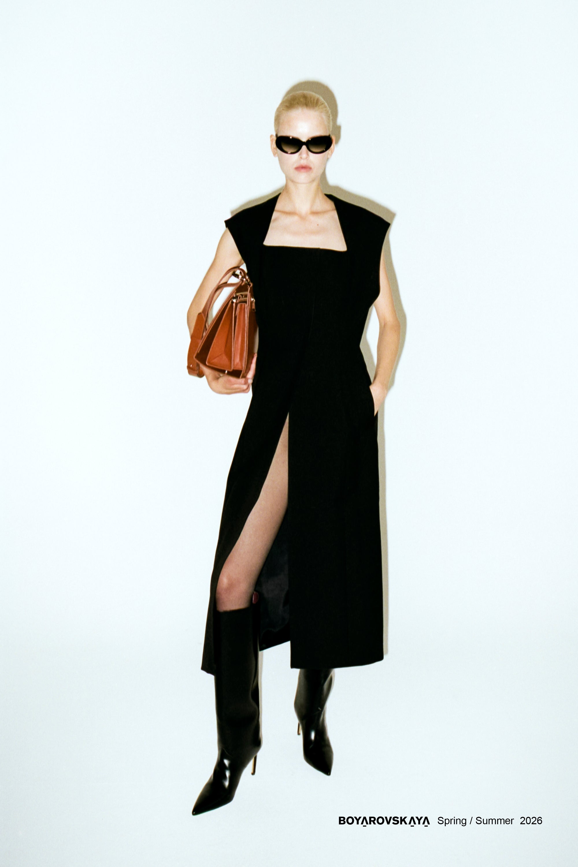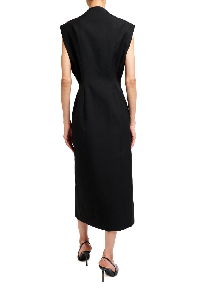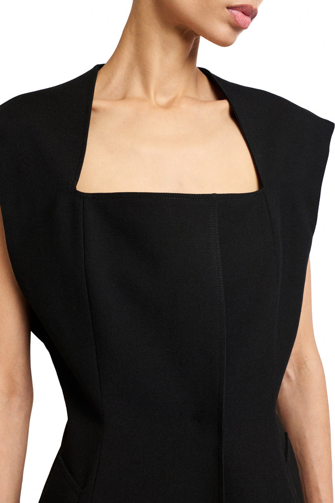 A sophisticated black jacket crafted from virgin wool, designed in Paris with meticulous attention to detail. The striking décolleté cut-out adds contemporary elegance to this timeless piece, creating a refined silhouette that balances classic tailoring with modern design. Perfect for elevating both professional and evening wardrobes with understated luxury and distinctive style.