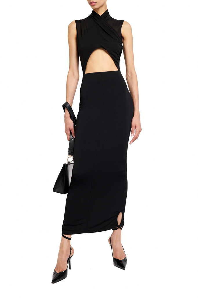 Elevate your wardrobe with the Black Skirt Silence, a refined midi silhouette crafted from premium jersey fabric. Designed in Paris, this piece embodies understated elegance with thoughtfully placed details adorning the hemline, adding subtle sophistication to its clean lines. The fluid drape of the jersey creates a flattering, comfortable fit that transitions seamlessly from day to evening. A timeless essential that pairs effortlessly with any top, this skirt delivers the polished aesthetic that defines contemporary Parisian style.