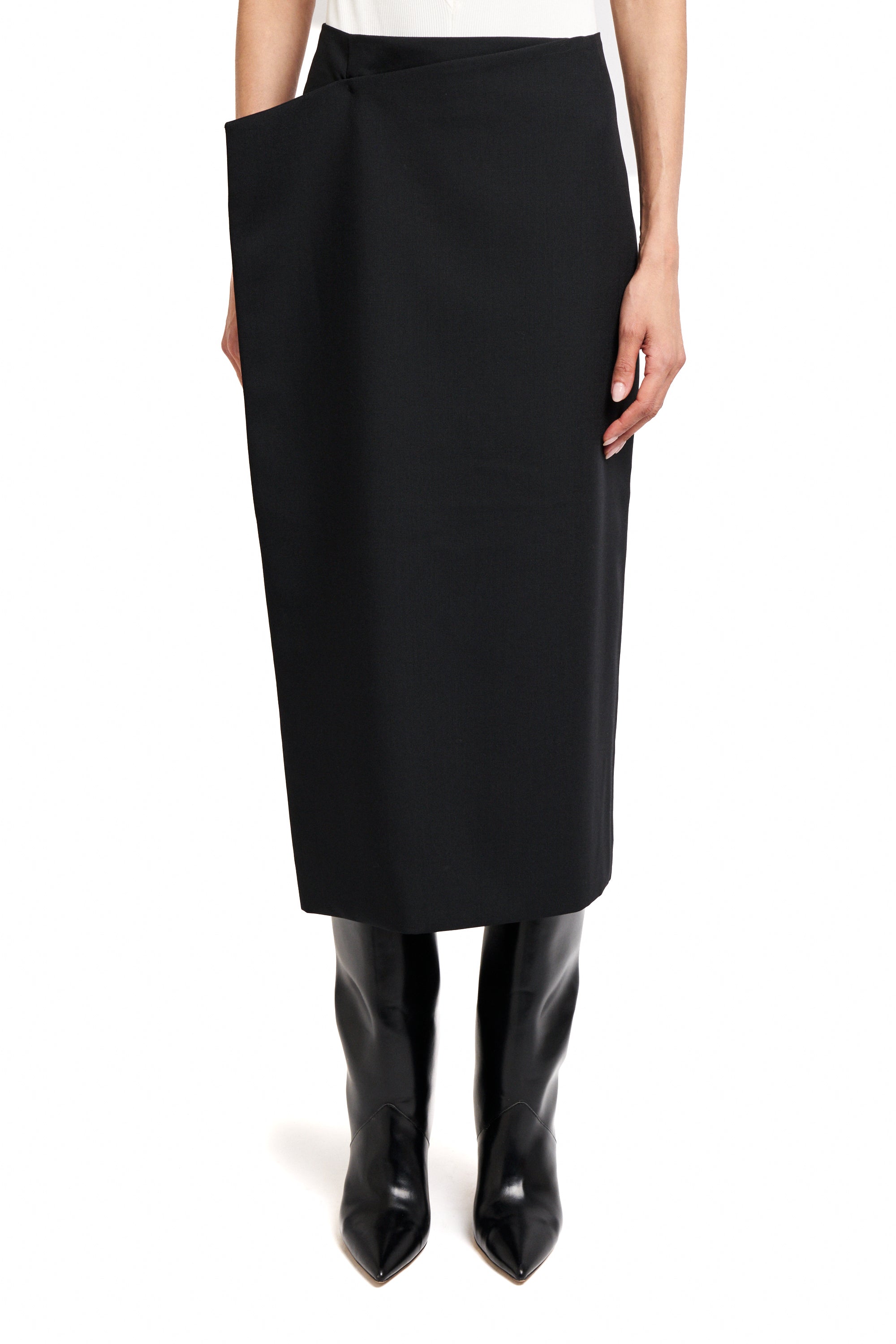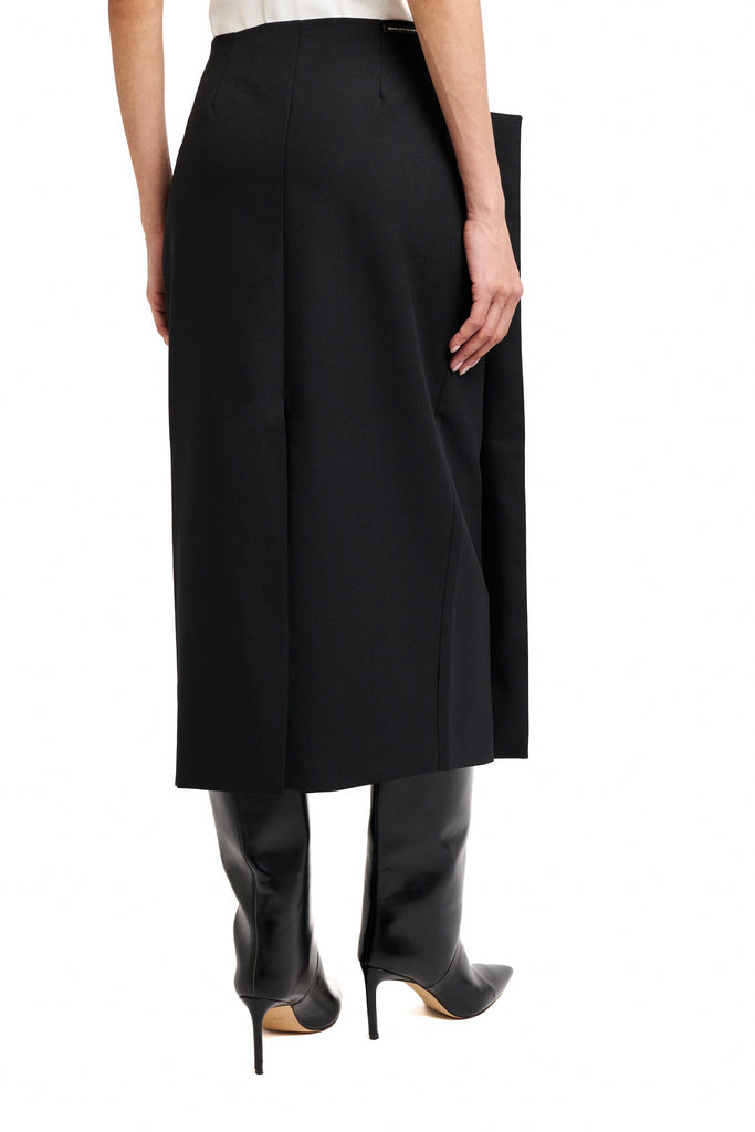 Crafted from luxurious mohair, this structured midi skirt exemplifies Parisian design sophistication. The wrap silhouette offers versatile styling options while the square cut provides a contemporary edge. Its refined construction ensures a polished drape that transitions seamlessly from day to evening wear. A timeless piece that elevates any wardrobe with understated elegance and expert tailoring.